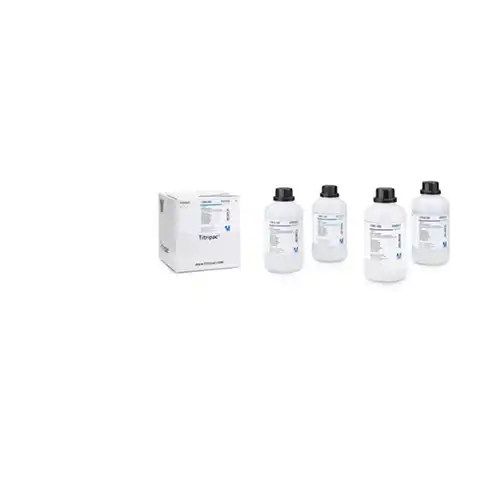 The buffer solution (citric acid/sodium hydroxide) is gravimetrically prepared using high-quality reagents in high-purity water. It is quality controlled and qualified in an ISO/IEC 17025 accredited calibration lab. Its pH value of 5.00 at 20°C is qualified using a combined glass electrode following a 5-point calibration method, in accordance with DIN 19268, against certified primary reference standards as per DIN 19266, IUPAC, NIST, USP, and Ph. Eur.