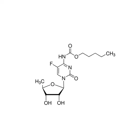 Capecitabine is an anti-cancer drug, a prodrug of doxifluridine, metabolized to 5-fluorouracil at the tumor site. The activation of capecitabine follows a pathway with three enzymatic steps and two intermediary metabolites, 5′-Deoxy-5-fluorocytidine (5′-DFCR) and 5′-Deoxy-5-fluorouridine (5′-DFUR), to form 5-fluorouracil.