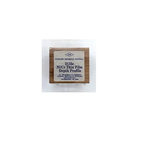 Each unit of Ni/Cr thin film depth profile standard (SRM) contains nine alternating metal thin-film layers, including five layers of pure chromium and four of pure nickel, on a polished silicon (100) substrate. These layers have nominal thicknesses of 57 nm for Cr and 56 nm for Ni. The area of the specimen is certified and determined by the full width of the substrate (1.0 cm) and a length of 2.0 cm, centered on the 2.54 cm length of the substrate. For more information, please refer to the COA and SDS.