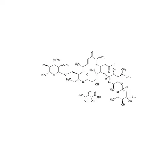 Tylosin tartrate is a tylosin derivative and a medium spectrum antibiotic, which can find applications in veterinary medicine for the treatment of infections caused by most gram-positive bacteria, mycoplasmas, some gram-negative bacteria and chlamydia bacteria.[1] It can also be used as a feed additive in order to improve the weight gain and feed efficiency of cattle, poultry, turkey and swine.[1]
