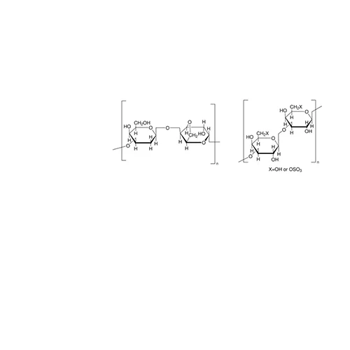 Agar or Type E agar is a thermo-reversible, polysaccharide gelling agent. Structurally it consists of two main fractions about 70% of agarose and 30% of agaropectin. The gelling properties of agar comes from the agarose, the high gel strength backbone consists of a linear polymer of 3-linked β-D-galactose and 4-linked 3,6-anhydro-α-L-galactose (LA) repeating units.[1]