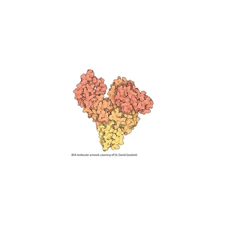Bovine serum albumin (BSA) is a 66 kDa protein consisting of three domains with two subdomains under each. It is a α-helical, globular and non-glycosylated protein.[1] It belongs to the serum albumins family. It has 17-disulfide bonds.[2] Albumin is the most abundant plasma protein in humans.[3]