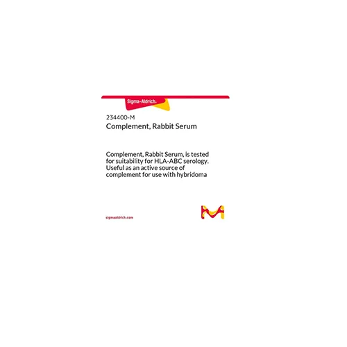 Complement, Rabbit Serum is a native, rabbit serum complement. Tested for suitability for HLA-ABC serology. Total lympholytic complement activity determined under conditions of NIH two-step cytotoxicity test that uses defined HLA isoantisera. Activity present at a titer of at least 1:4. No intrinsic cytotoxicity against human peripheral blood lymphocytes. Intended for micro and macro lymphocyte cytotoxicity testing with human or animal sera. Also useful as an active source of complement for use with hybridoma antibodies, alloantisera, and related applications in which a non-cytotoxic source is required.